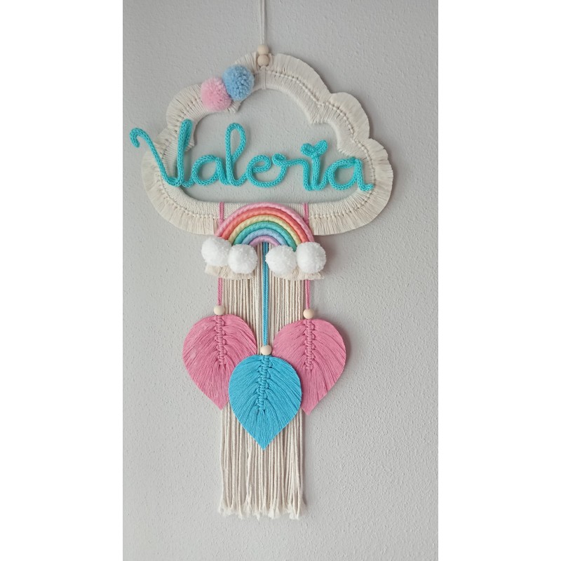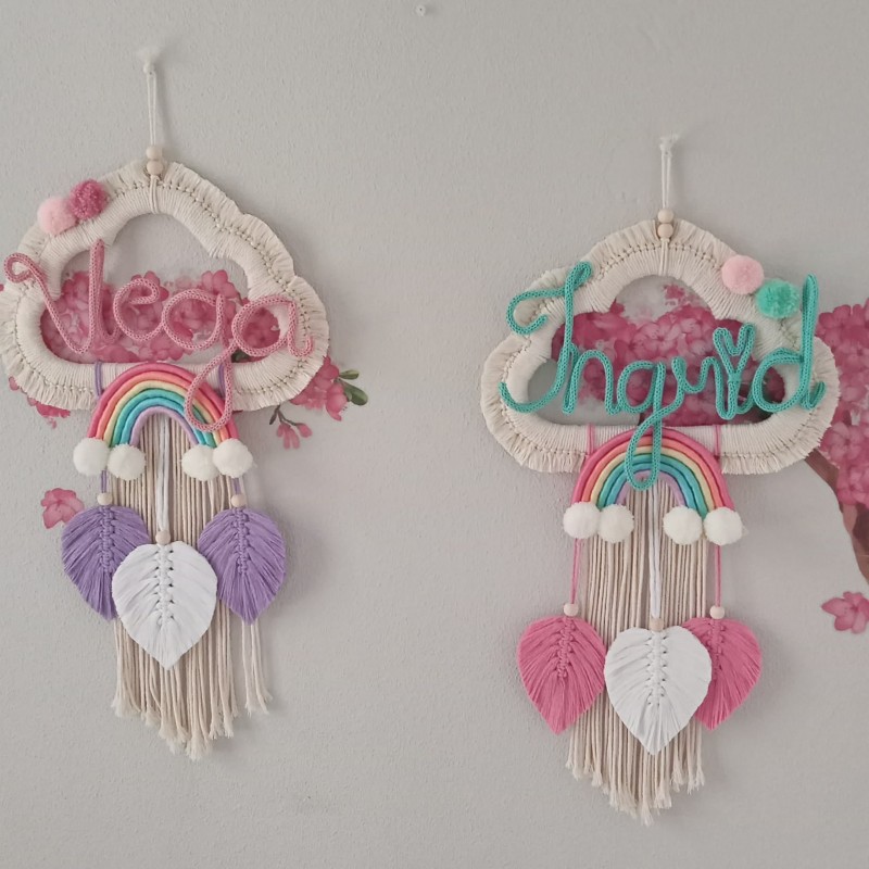 Atrapasueños hechos con la técnica de macramé, de madera e hilo de algodón natural, medidas: 35*65 cm.