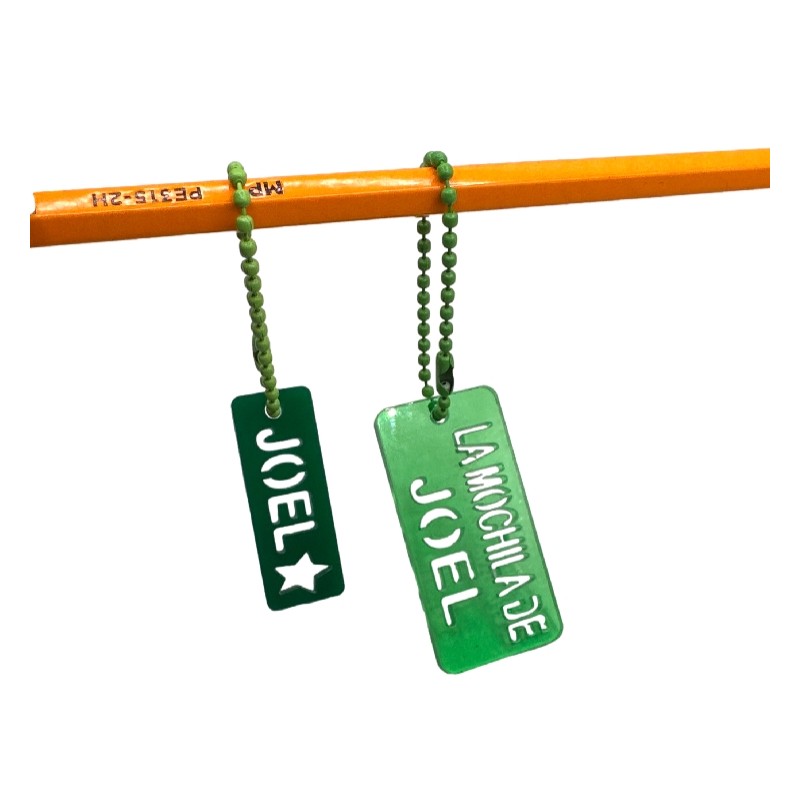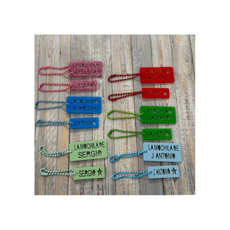 Lote identificador mochila y estuche - Plexy o metacrilato 50x30 mm y 40x15 mm ( Personalizado)
