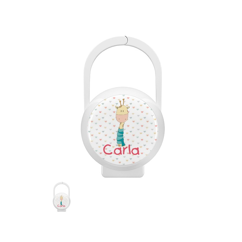 Es un regalo típico para embarazadas, mamás primerizas o como detalle al bebé en sus primeras semanas o meses de vida. Pero queremos que lo hagas mucho más especial y para ello, te recomendamos crear un pack junto a otros productos de nuestro catálogo: chupete personalizado y un sujeta chupetes. Puedes hacer la misma personalización para los tres artículos y así estarán a juego.