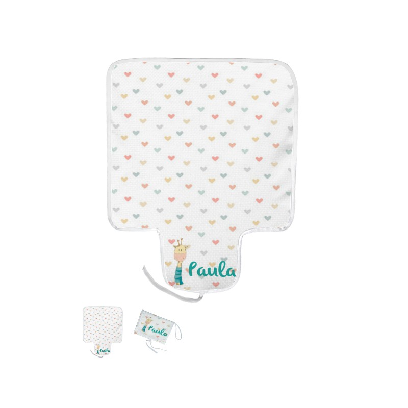 Tiene el interior plastificado, para poder limpiar fácil y rápidamente en caso de mancharse. Este cambiador plegable personalizado es ligero, cómodo y fácil de transportar. Un básico para padres en el momento en que salen de casa con un bebé.