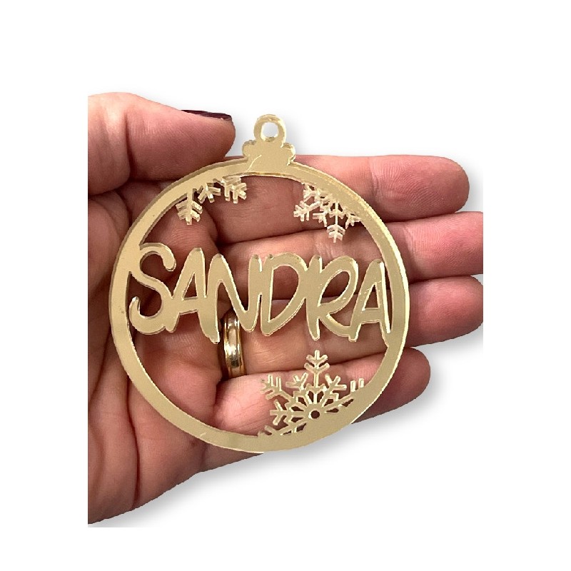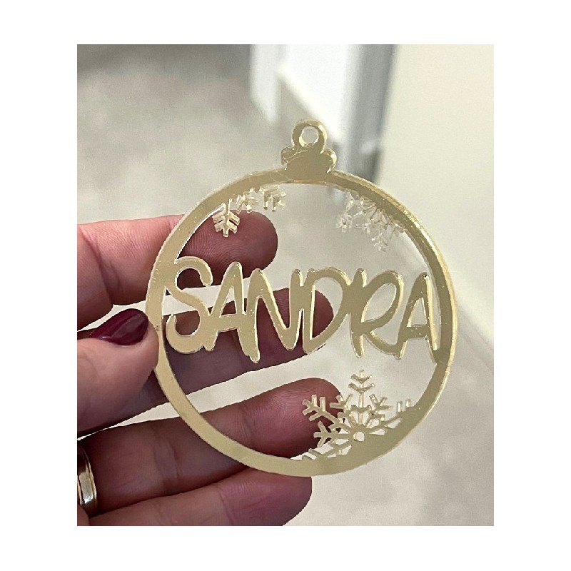 Bola de Navidad con nombre personalizado POR ENCARGO. Material plexy dorado espejo. Tamaño 7.5x6.4 cm cm. Ideal para decorar tu árbol de navidad.