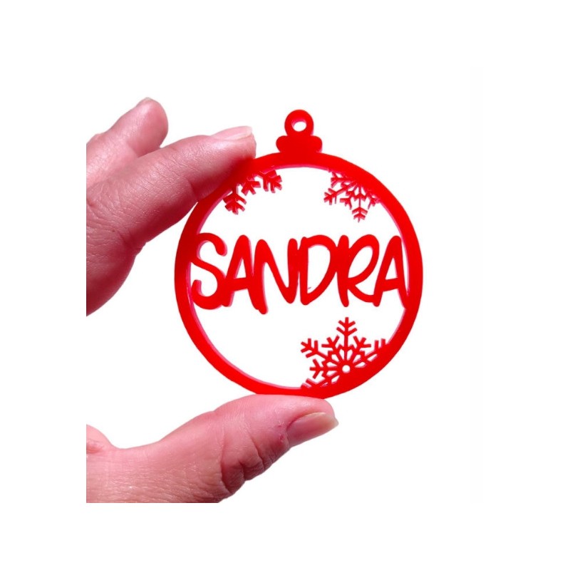 Bola de Navidad Plexy ROJO 6.5 cm con nombre - Modelo copos nieve